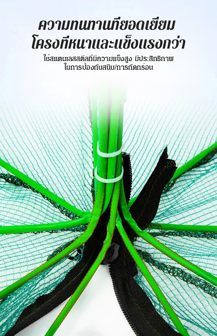 ตาข่ายเหล็กหนากันสนิม + กรวยหนามคู่ ช่วยป้องกันปลาไม่ให้หลุดรอด 💧