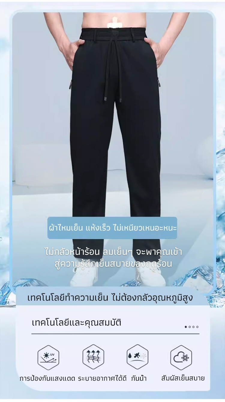[ไม่กลัวแดด สดชื่นรับซัมเมอร์!] 🌞 กางเกงกีฬาแห้งเร็วกันแดดผ้าไหมเย็นแบบตาข่ายสำหรับผู้ชาย