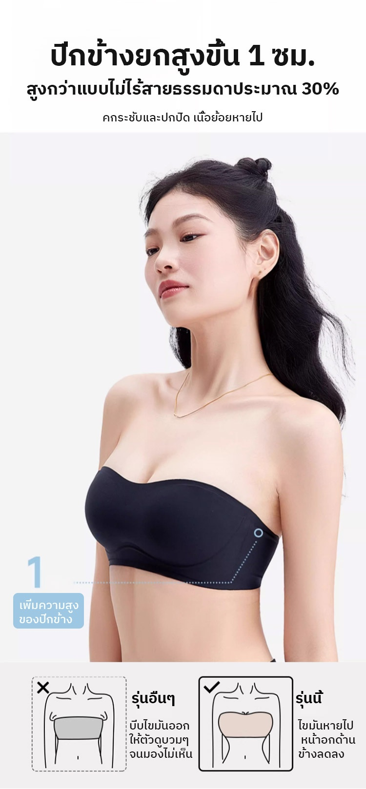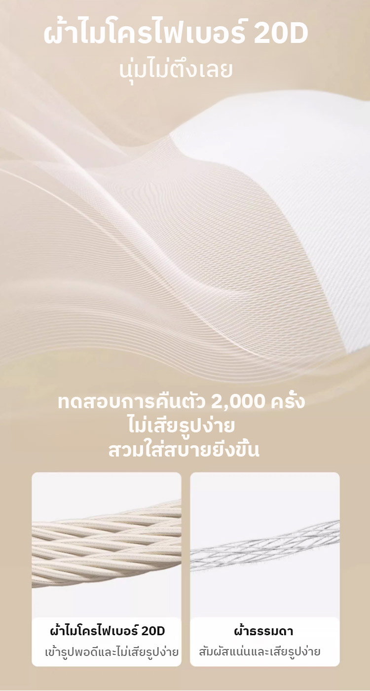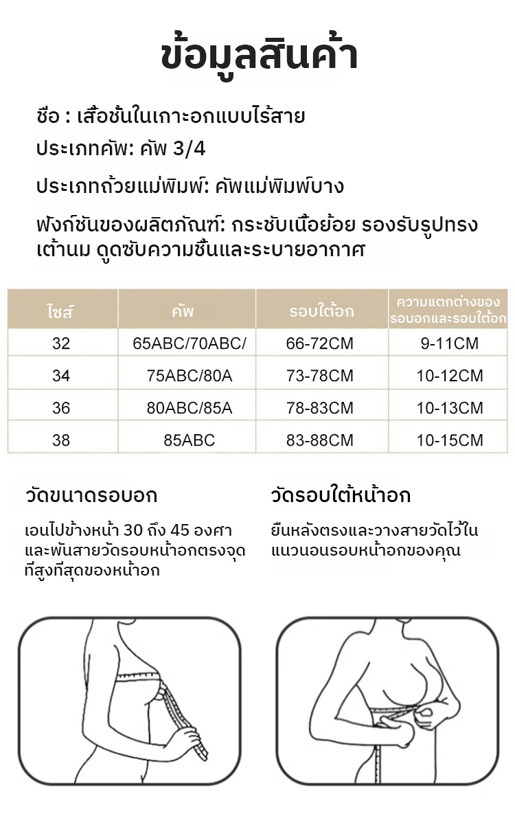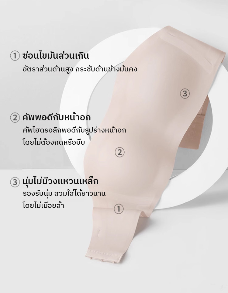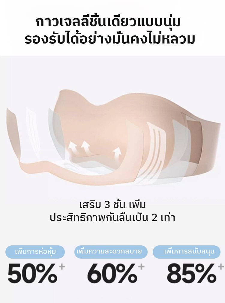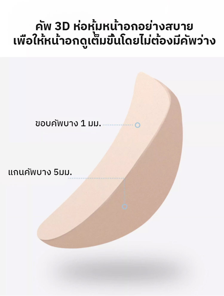 ✨ คัพทรงบางแบบ 3 มิติ ช่วยรองรับ ลดแรงกดด้านข้างของหน้าอก และสร้างรูปทรงที่สวยงามแม้ไม่มีโครงเหล็ก